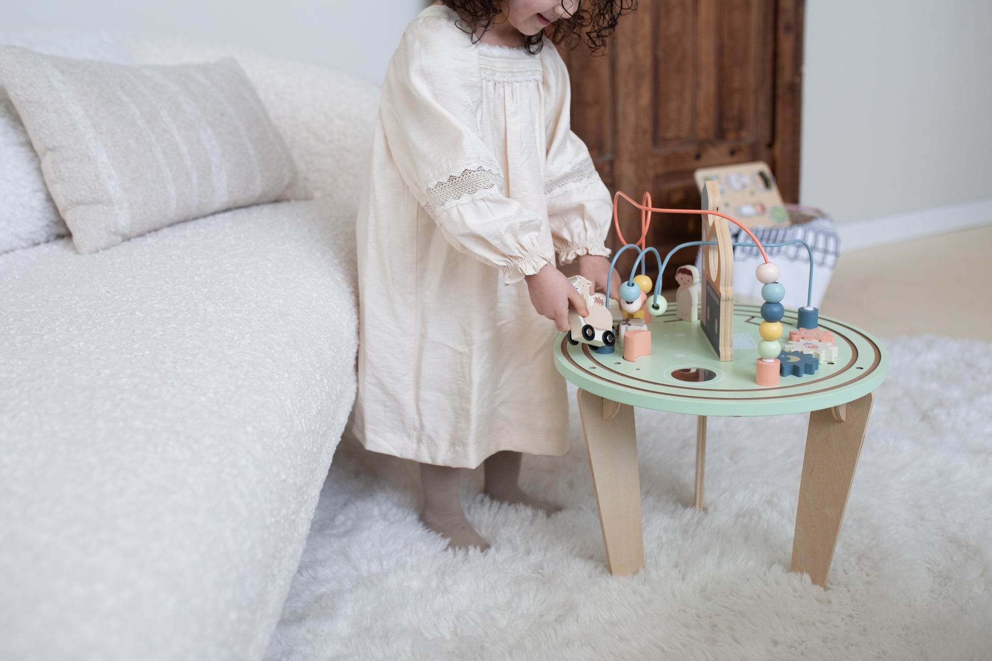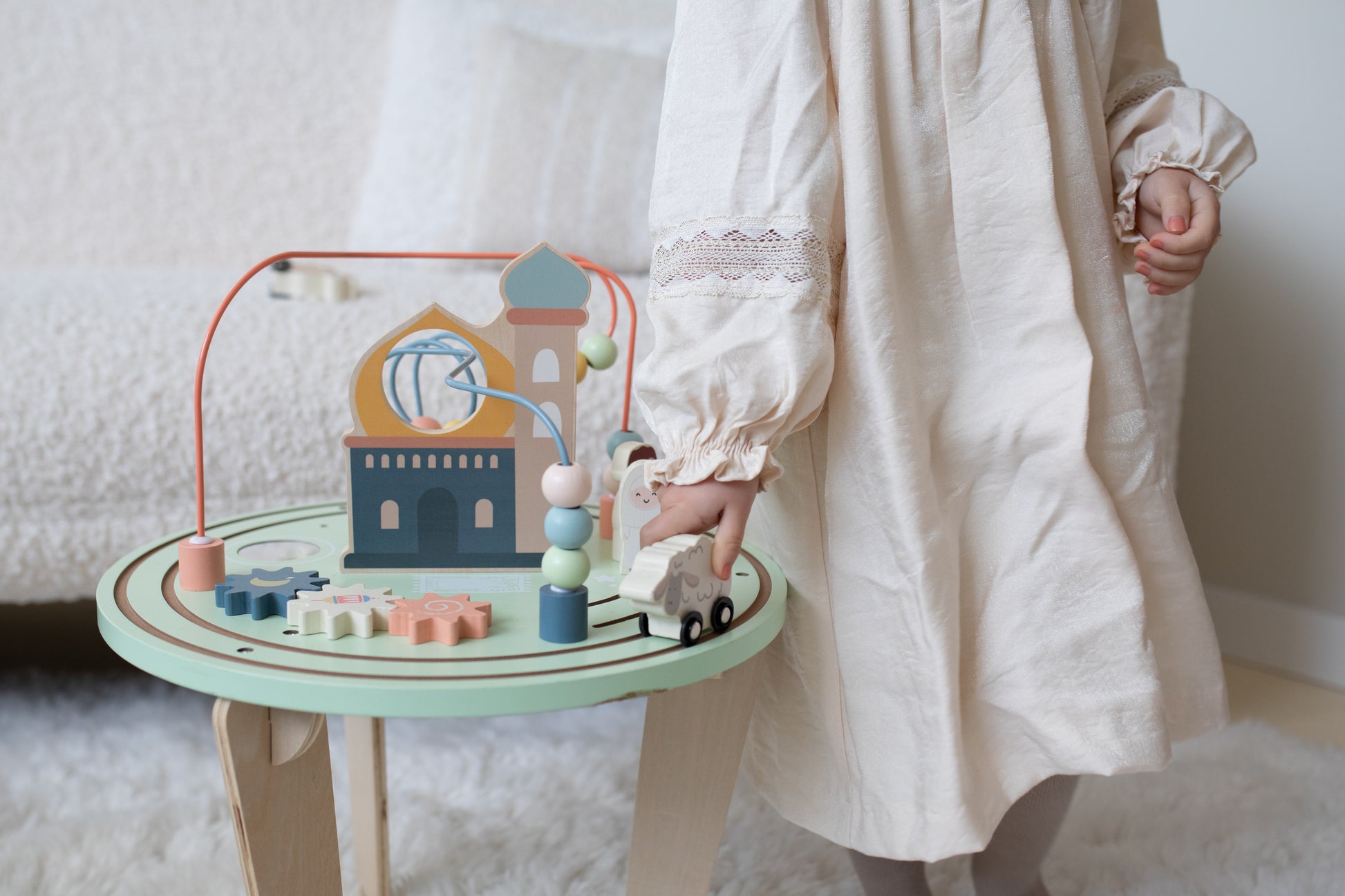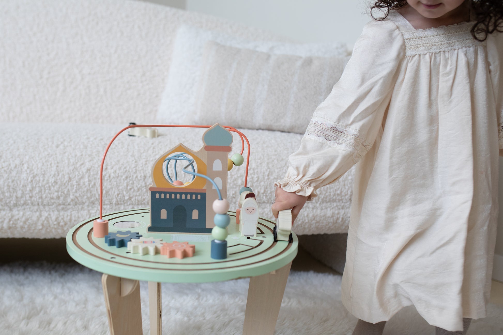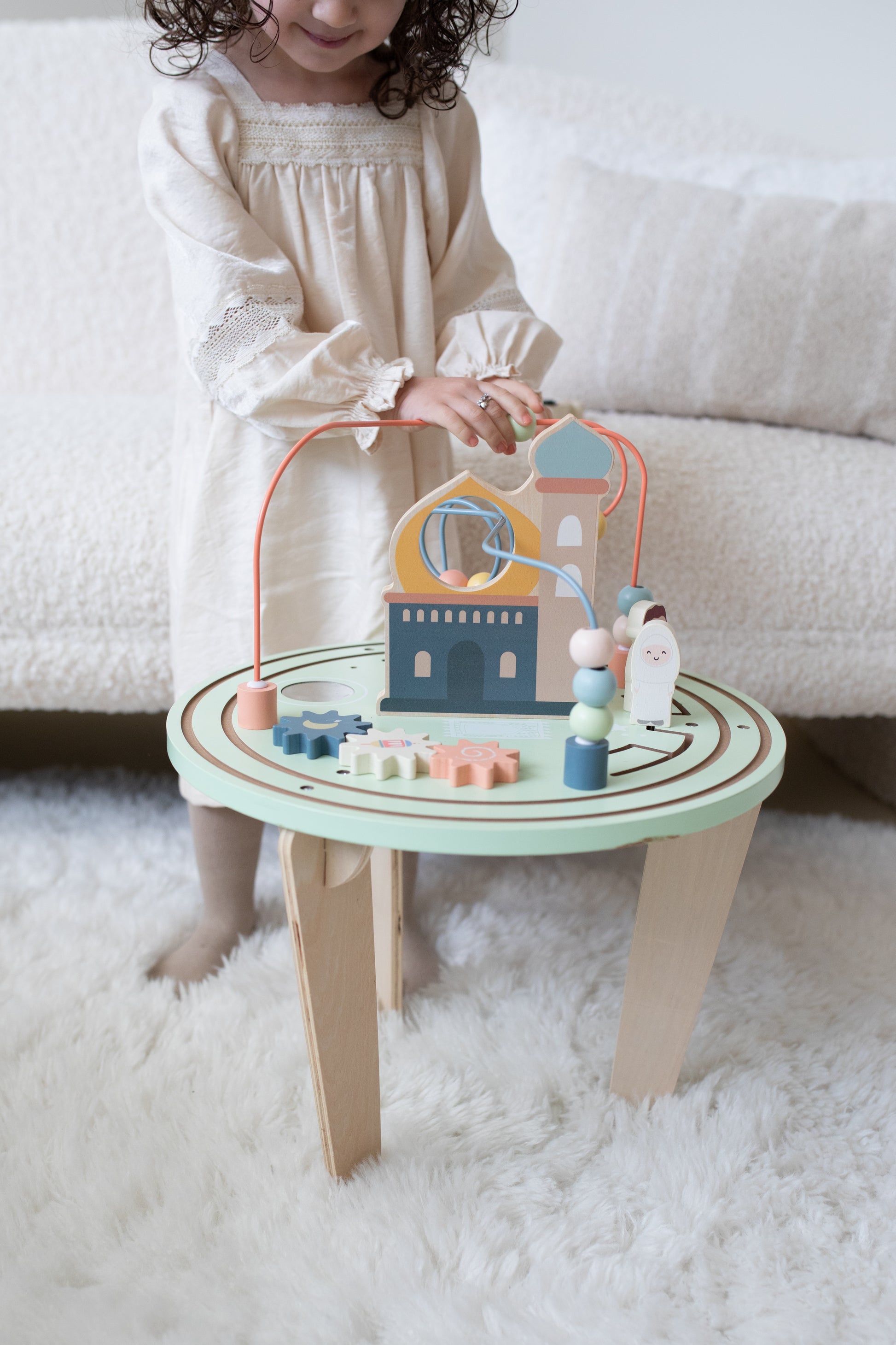 Laat je kleintje ontdekken en leren met deze veelzijdige activiteitentafel, perfect voor kinderen vanaf 1 jaar. De tafel biedt diverse speelmogelijkheden, zoals een kralenloop en kleurrijke figuren, die de zintuigen prikkelen en motorische vaardigheden ontwikkelen. Gemaakt van veilige, kindvriendelijke materialen, past het moderne ontwerp in elke kinderkamer. Deze activiteitentafel helpt niet alleen bij het ontwikkelen van belangrijke vaardigheden, maar biedt ook de kans om islamitische waarden zoals het bezoeken van de moskee en samen bidden. Ideaal voor urenlang speelplezier, zowel alleen als met vriendjes!