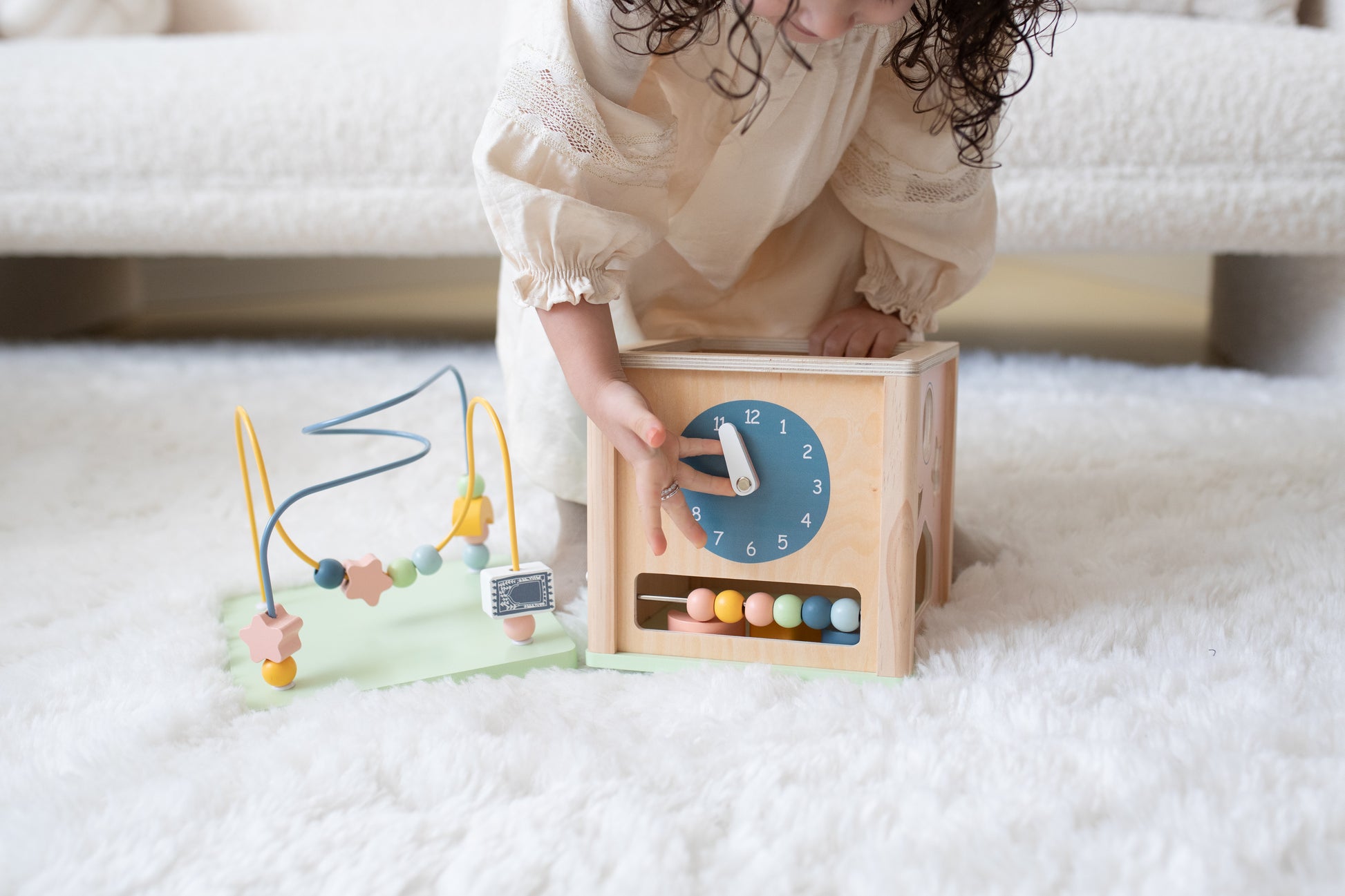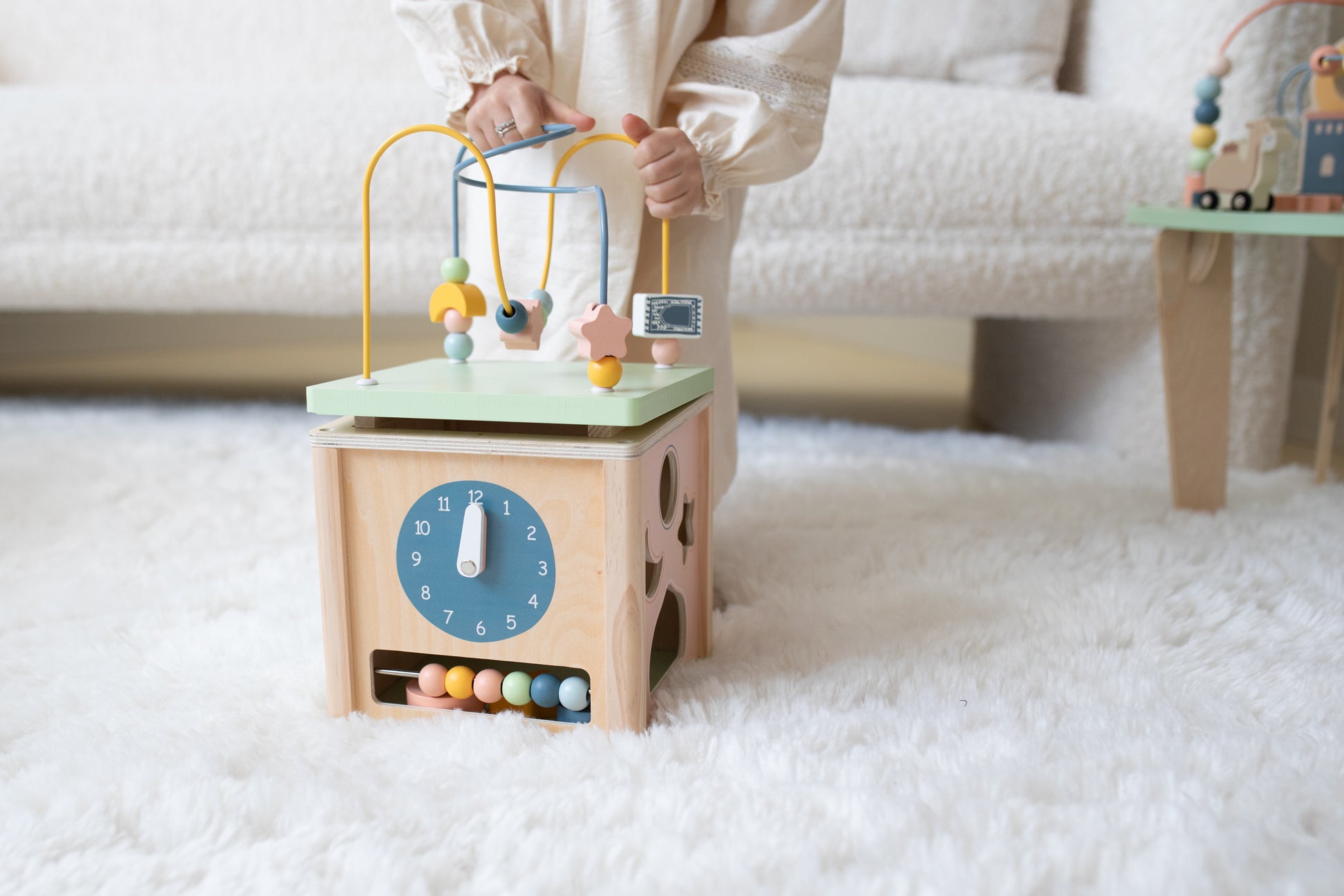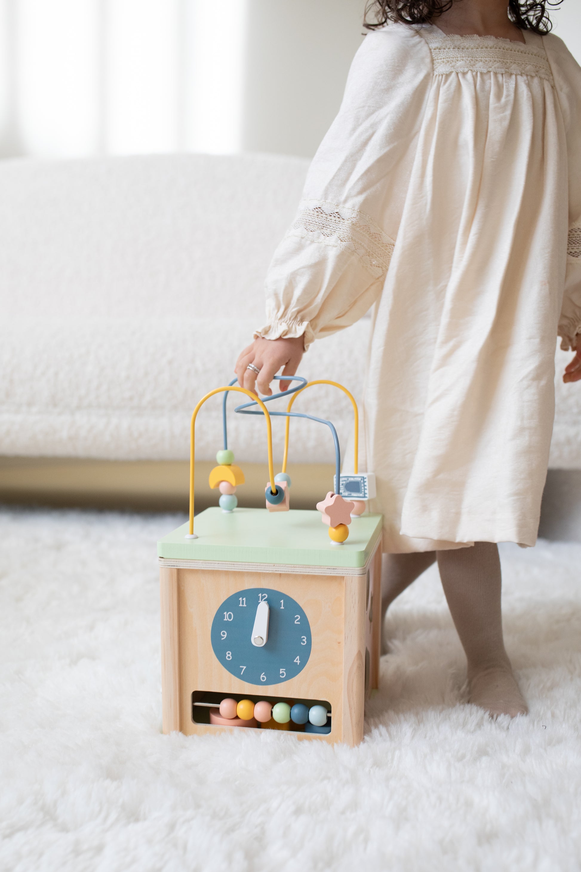 Ontdek de magie van onze activiteiten kubus, een perfecte combinatie van leren en spelen! Deze kleurrijke kubus nodigt kinderen uit tot avontuur en stimuleert hun motorische en cognitieve ontwikkeling. Met speelse kralen die over de draad glijden, draaiende tandwielen en unieke vormen, biedt elke zijde van de kubus iets nieuws en uitdagends.