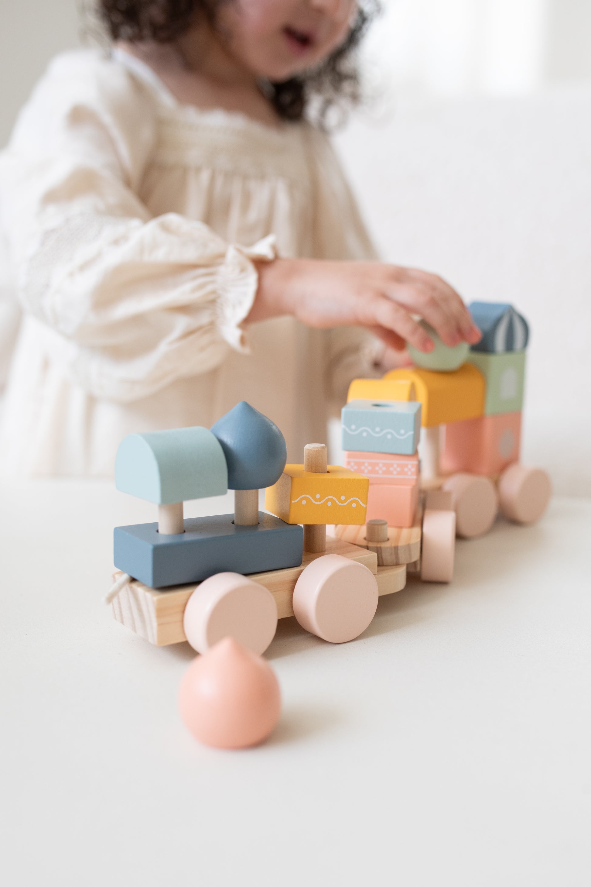 Choo choo! Onze prachtige blokken trein brengt creativiteit en avontuur samen! Deze kleurrijke trein stimuleert de fantasie van je kind en helpt bij de ontwikkeling van motorische vaardigheden. Terwijl ze blokken stapelen en rangschikken, leren ze probleemoplossend denken en bevorderen ze sociale interactie. Perfect voor urenlang speelplezier en een geweldig cadeau!